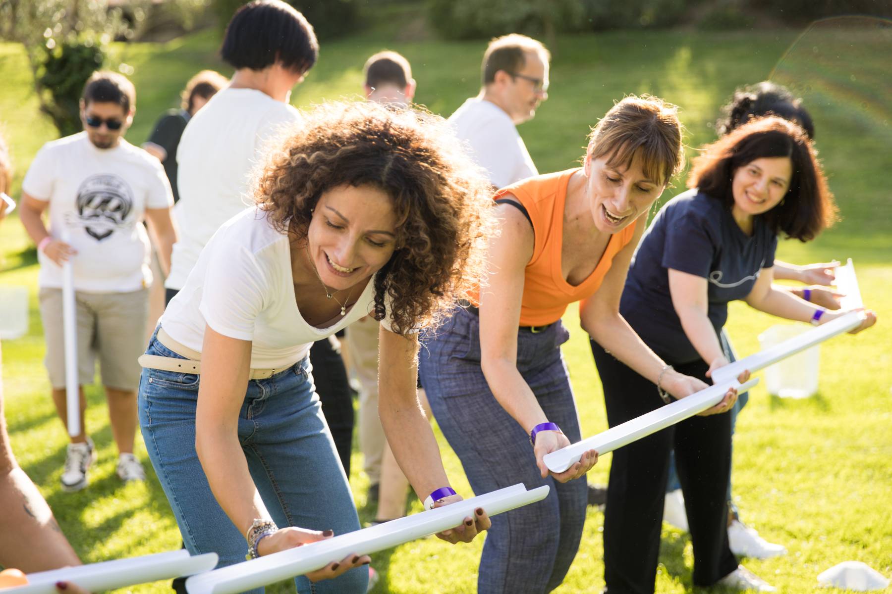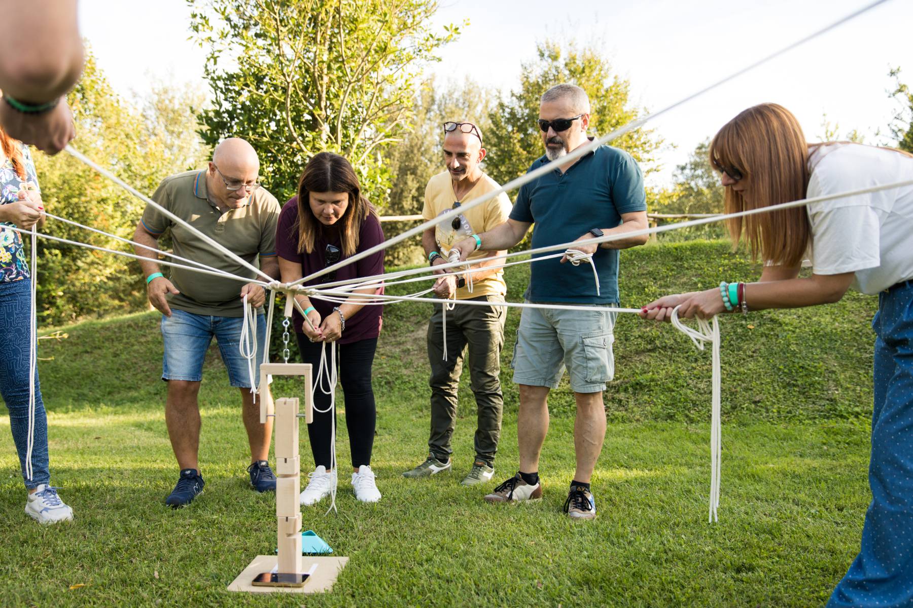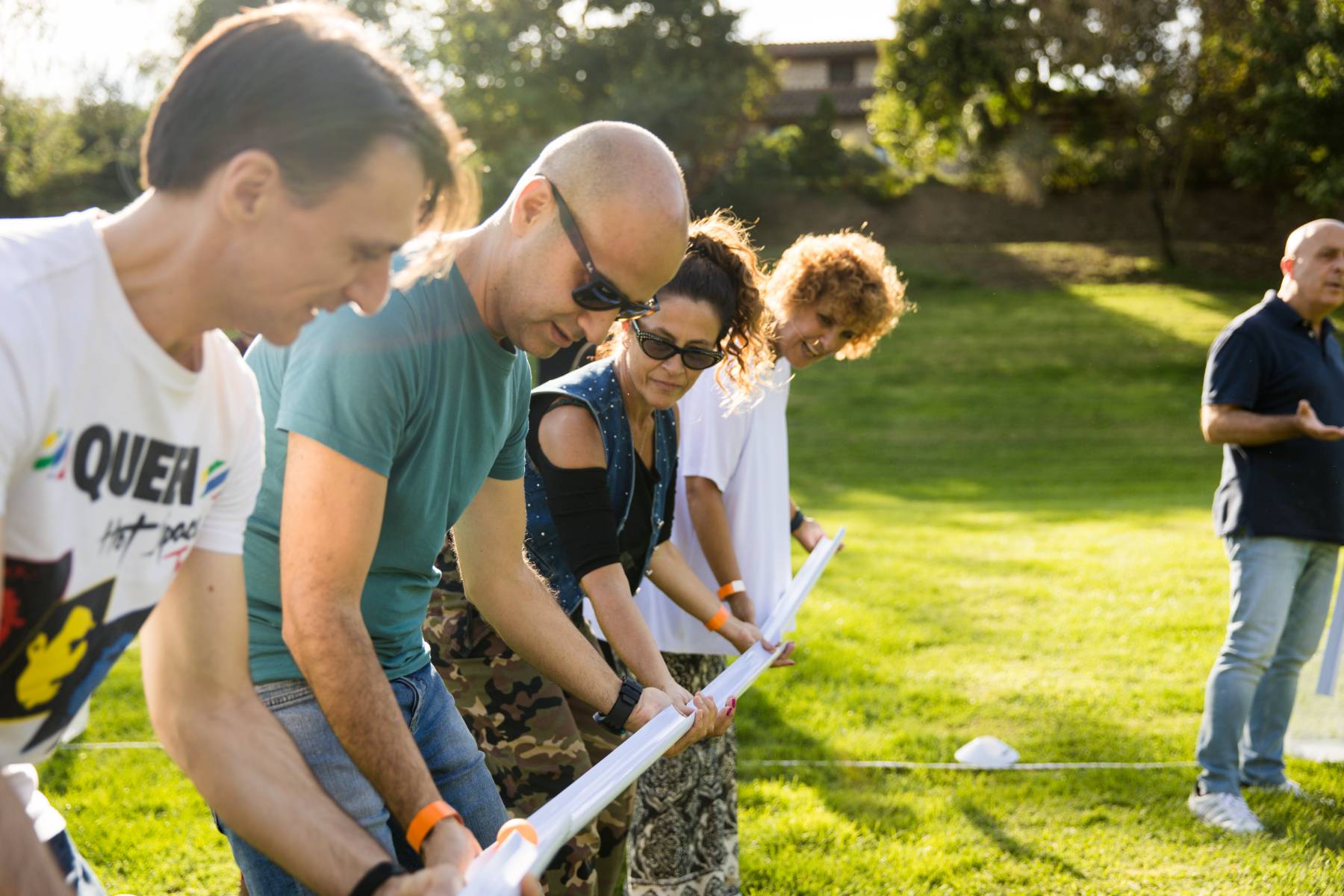 Dieci squadre, tante prove diverse, un unico filo conduttore: collaborazione, coordinamento e comunicazione. Ci siamo messi alla prova con la “gimkana bendati”, abbiamo costruito le “torri del potere”, fatto scorrere una pallina attraverso le “pipeline” e persino attraversato un immaginario “fiume acido”.